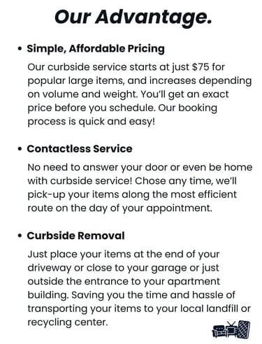 Curbside Junk Collection delivers dependable, hassle-free junk removal services throughout Frederickson, WA, providing a simple solution for clearing out unwanted furniture, appliances, and electronics. Whether you’re decluttering your Frederickson garage or removing a single item like a couch or mattress, we handle pickups with efficiency and care. We mainly do curbside pick-up, such as couch removal, TV recycling, and appliance recycling, tailored to save you from managing a 2 or 4 hour service window like many other junk removal companies. This keeps our service price extremely low.